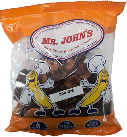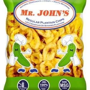Mr. John’s plantain chips comes in 2 flavors – Spicy and Unripe.